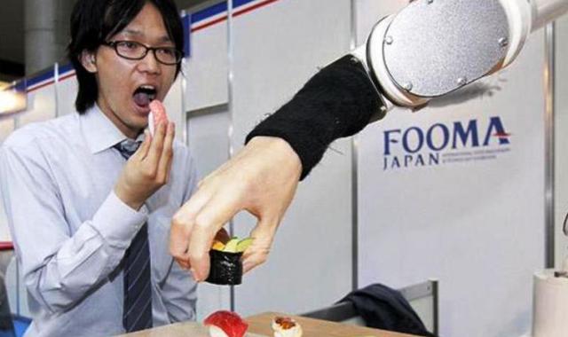 现今的寿司机器人本事更大了。寿司行业经常举办“人与机器人”比赛,赛果一再显示,在速度上,人力绝对无法赶超机器。一名熟练的寿司师傅最快能用三分钟制作七盘寿司,至今最厉害的寿司达人是用一小时制作600个寿司,可是寿司机器人每小时至少能制作3600个寿司。